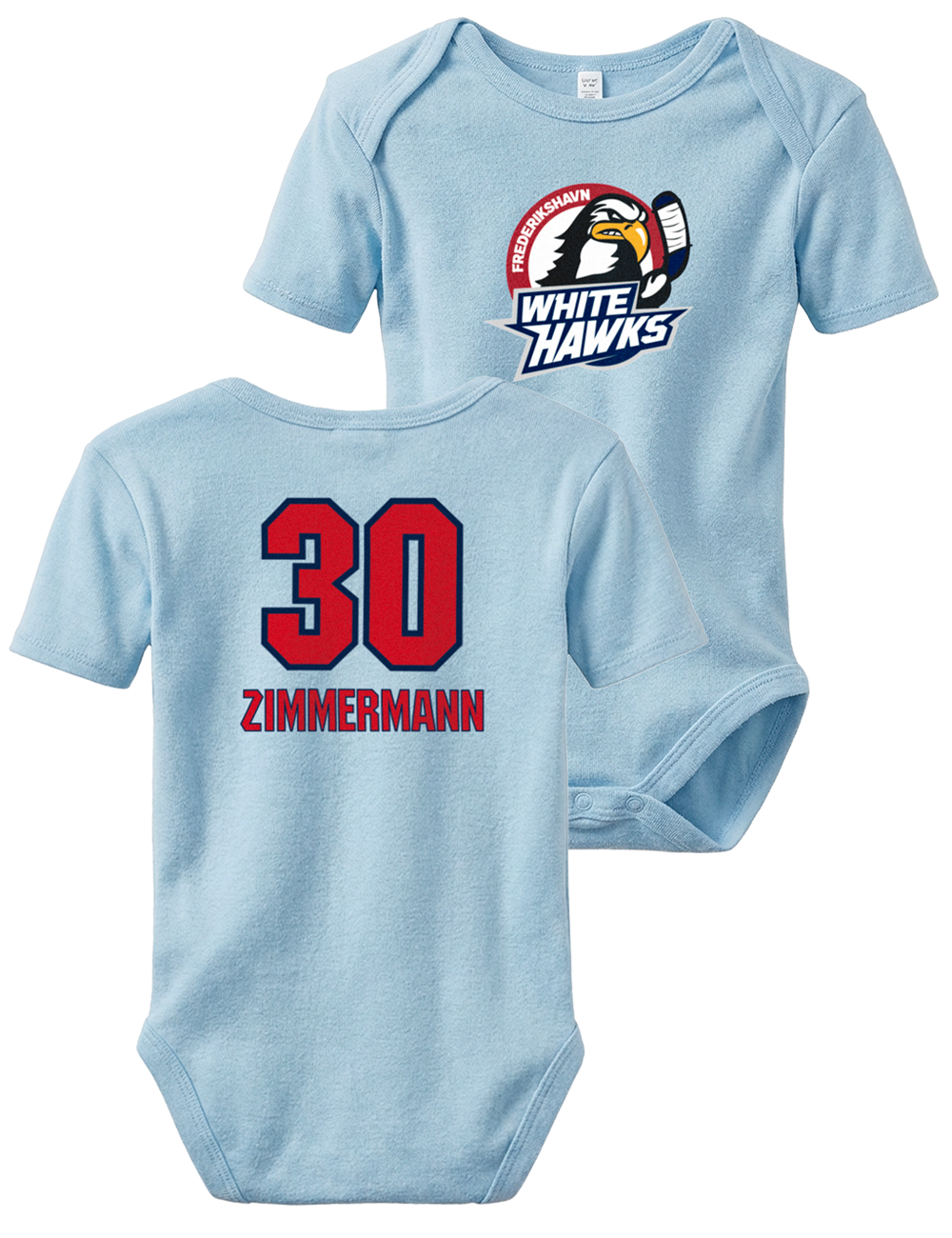 Lad familiens mindste White Hawks-fan være en del af holdet fra første dag. Denne søde baby body er dekoreret med det officielle Frederikshavn White Hawks-logo på fronten og kan personliggøres med eget navn og nummer på ryggen – ligesom en rigtig spillertrøje.