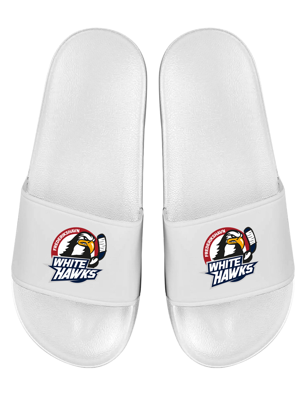 Vis din støtte til Frederikshavn White Hawks – også når du slapper af. Disse komfortable klipklapper er dekoreret med det velkendte White Hawks-logo og er perfekte til både hverdagsbrug, omklædningsrummet eller en tur på stranden.