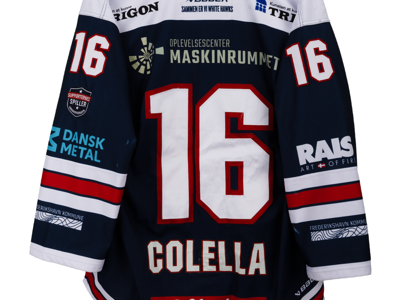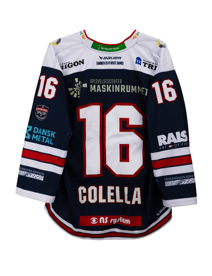 Autentisk match worn udebanetrøje – Colella #16, Frederikshavn White Hawks