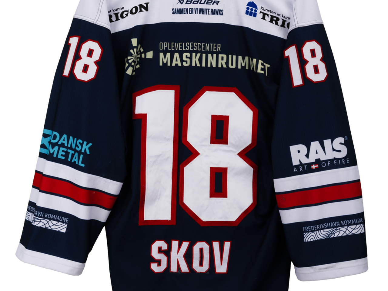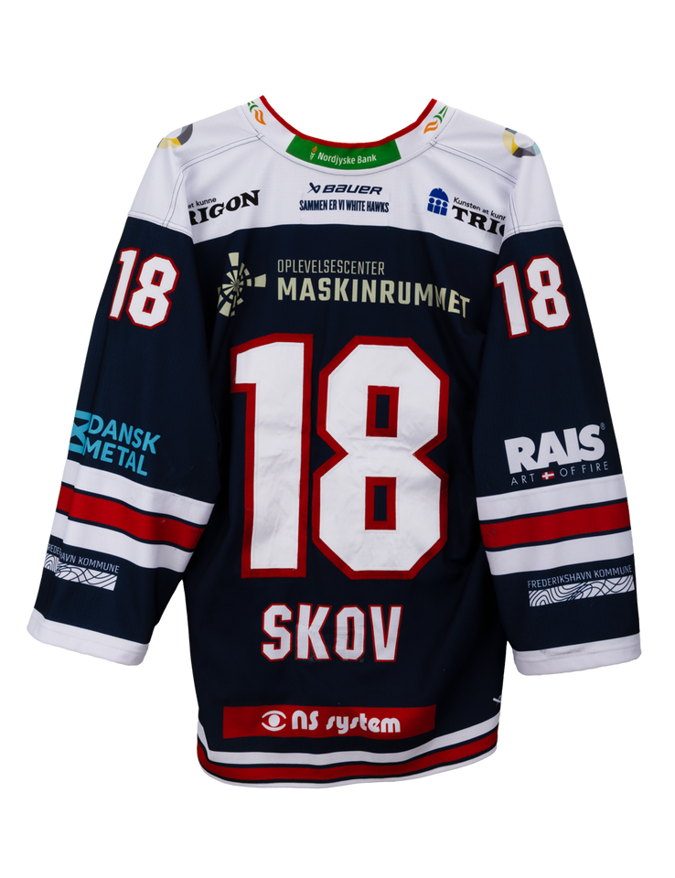 Autentisk match worn udebanetrøje – Skov #18, Frederikshavn White Hawks
