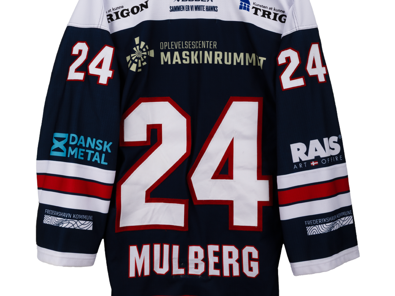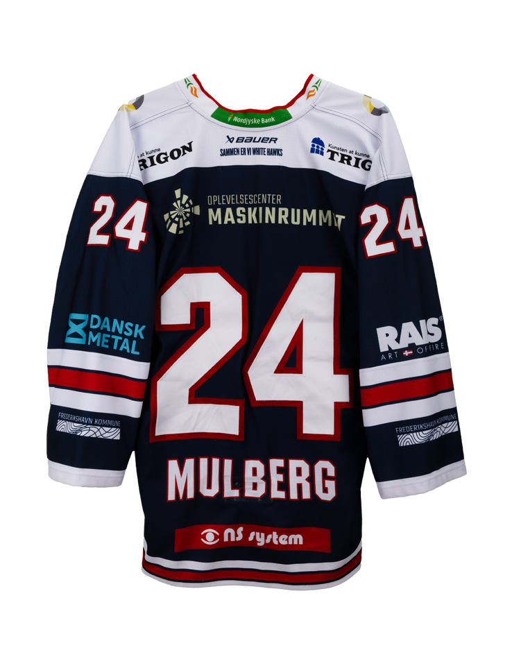 Autentisk match worn udebanetrøje – Mulberg #24, Frederikshavn White Hawks