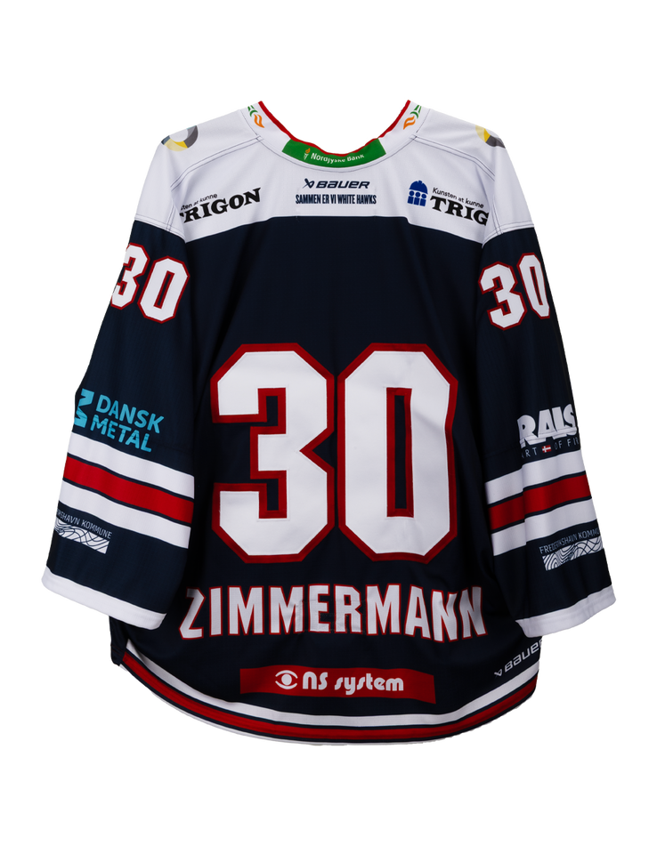 Autentisk match worn udebanetrøje – Zimmermann #30, Frederikshavn White Hawks