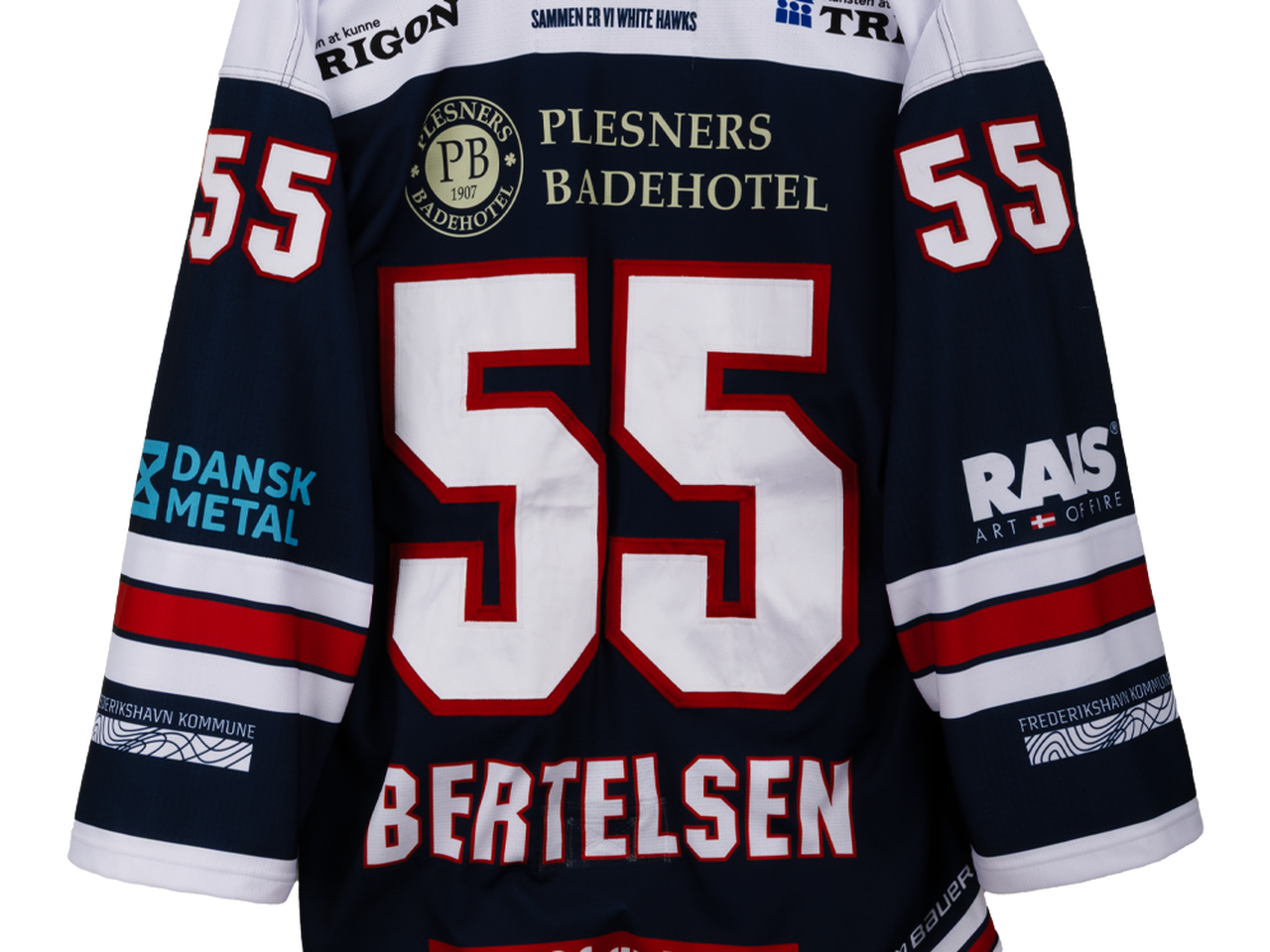 Autentisk match worn udebanetrøje – Bertelsen #55, Frederikshavn White Hawks