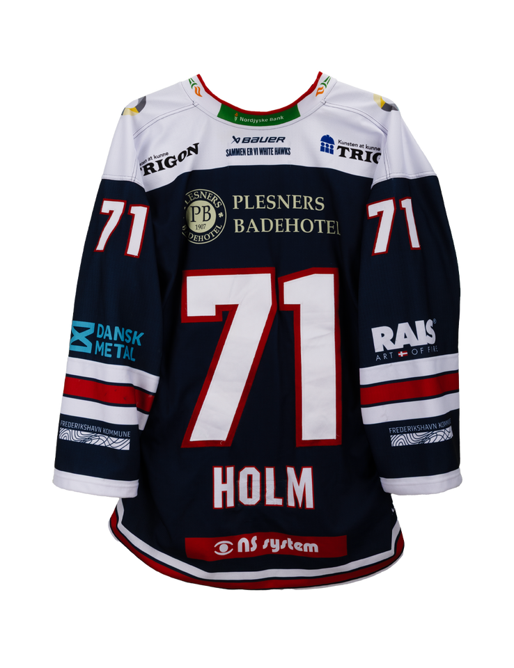 Autentisk match worn udebanetrøje – Holm #71, Frederikshavn White Hawks