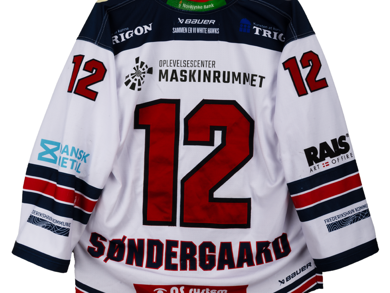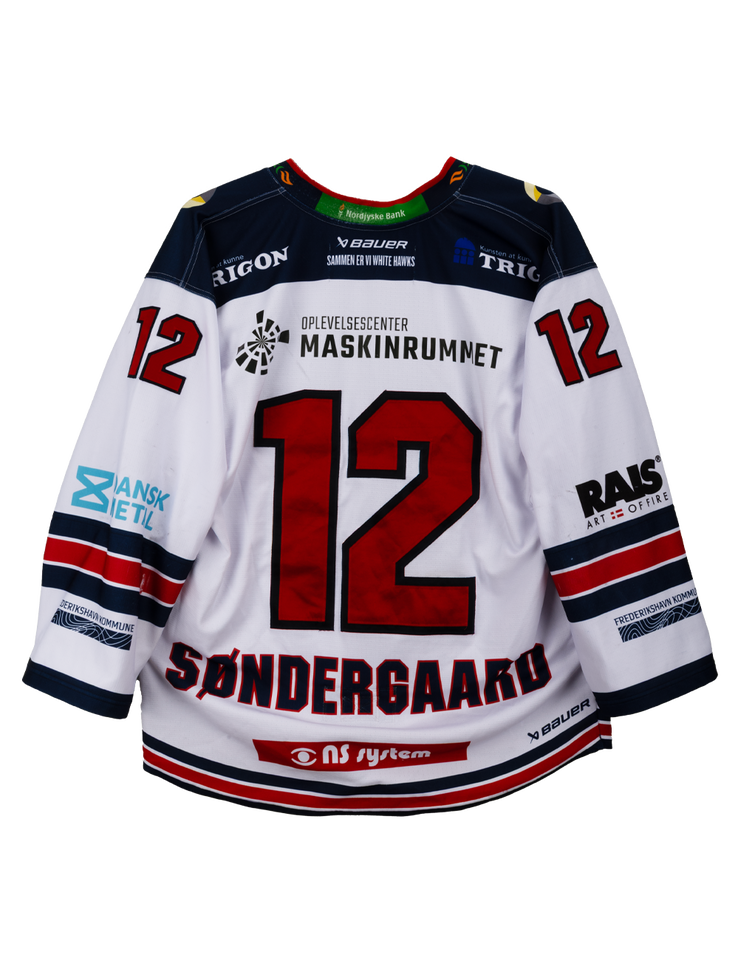 Autentisk match worn hjemmebanetrøje – Søndergaard #12, Frederikshavn White Hawks