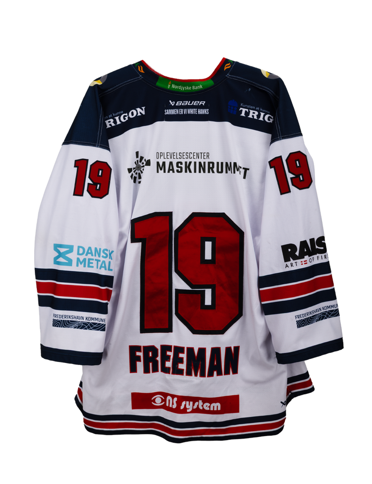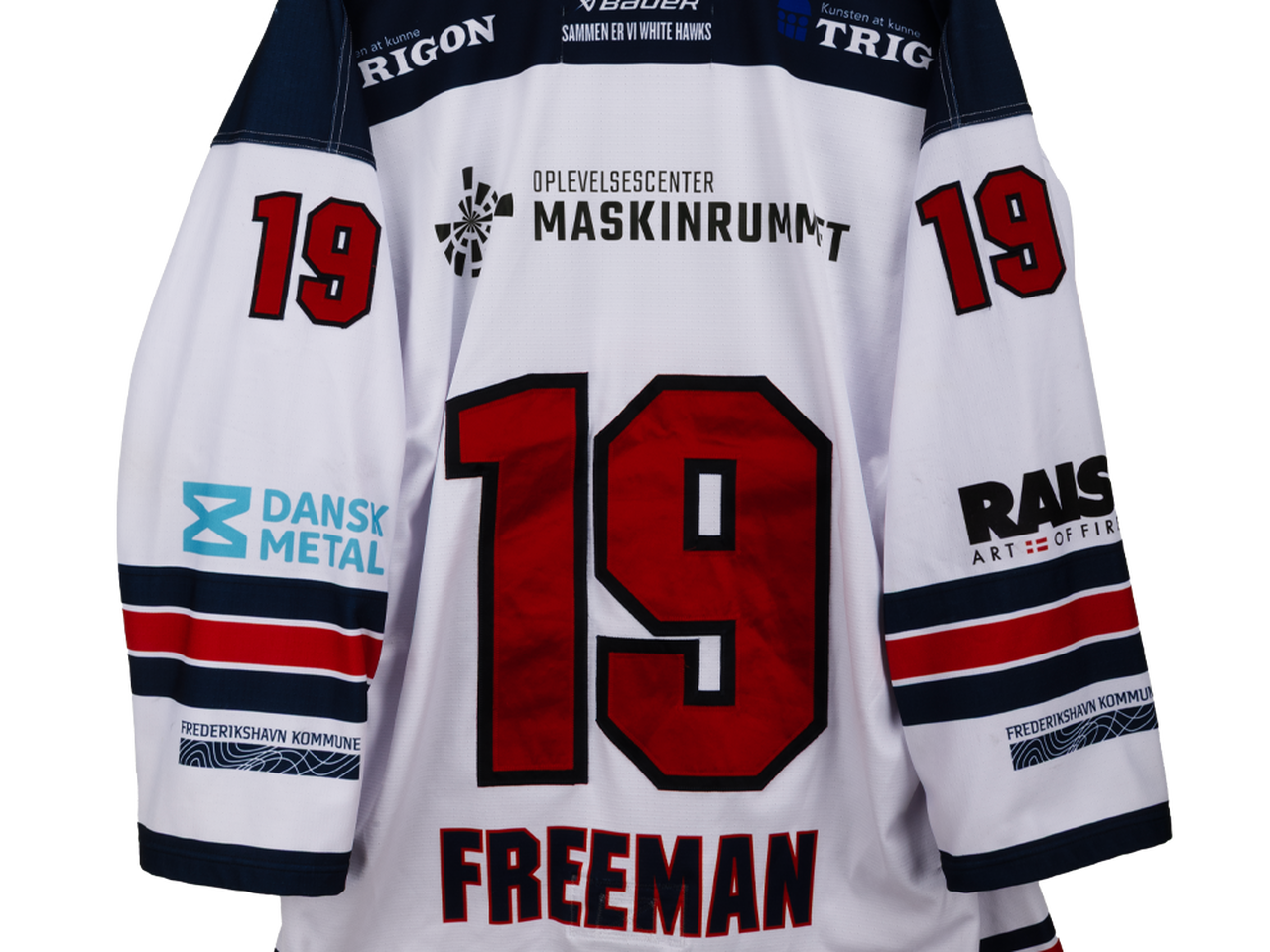 Autentisk match worn hjemmebanetrøje – Freeman #19, Frederikshavn White Hawks
