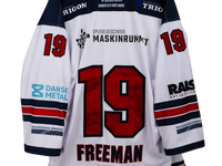Her får du en unik mulighed for at sikre dig en ægte match worn trøje fra Freeman #19 fra Frederikshavn White Hawks.