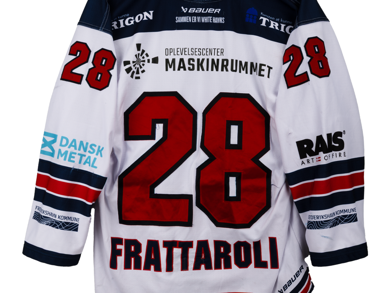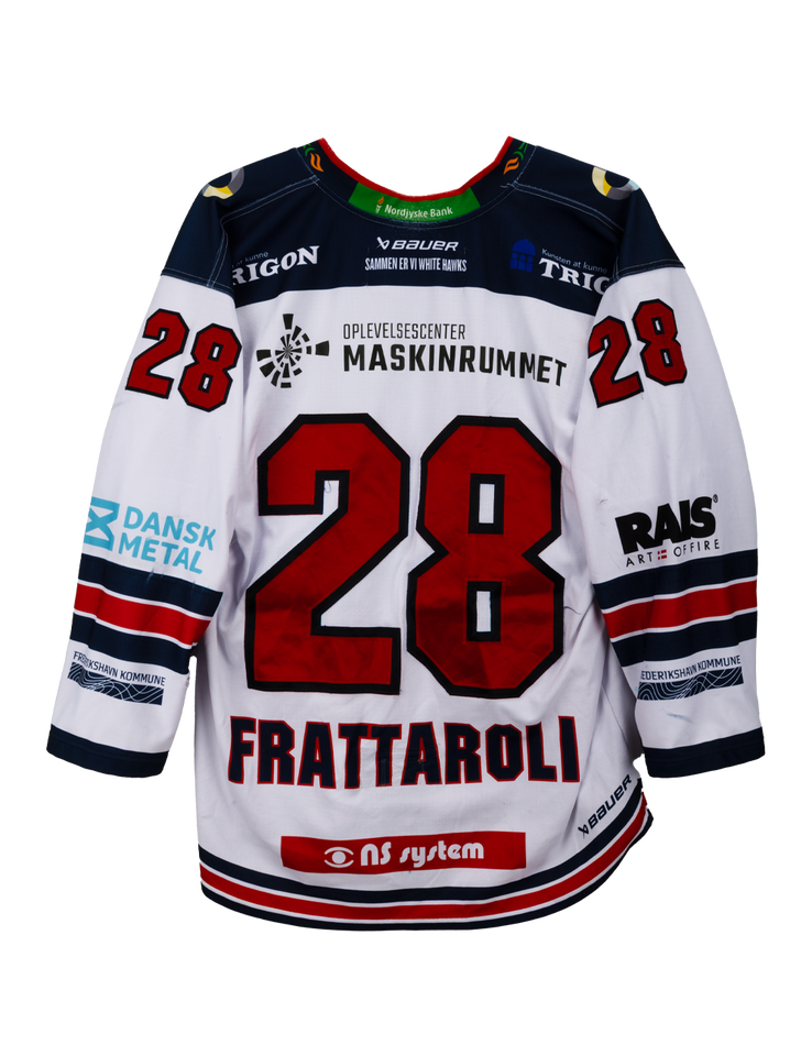 Autentisk match worn hjemmebanetrøje – Frattaroli #28, Frederikshavn White Hawks