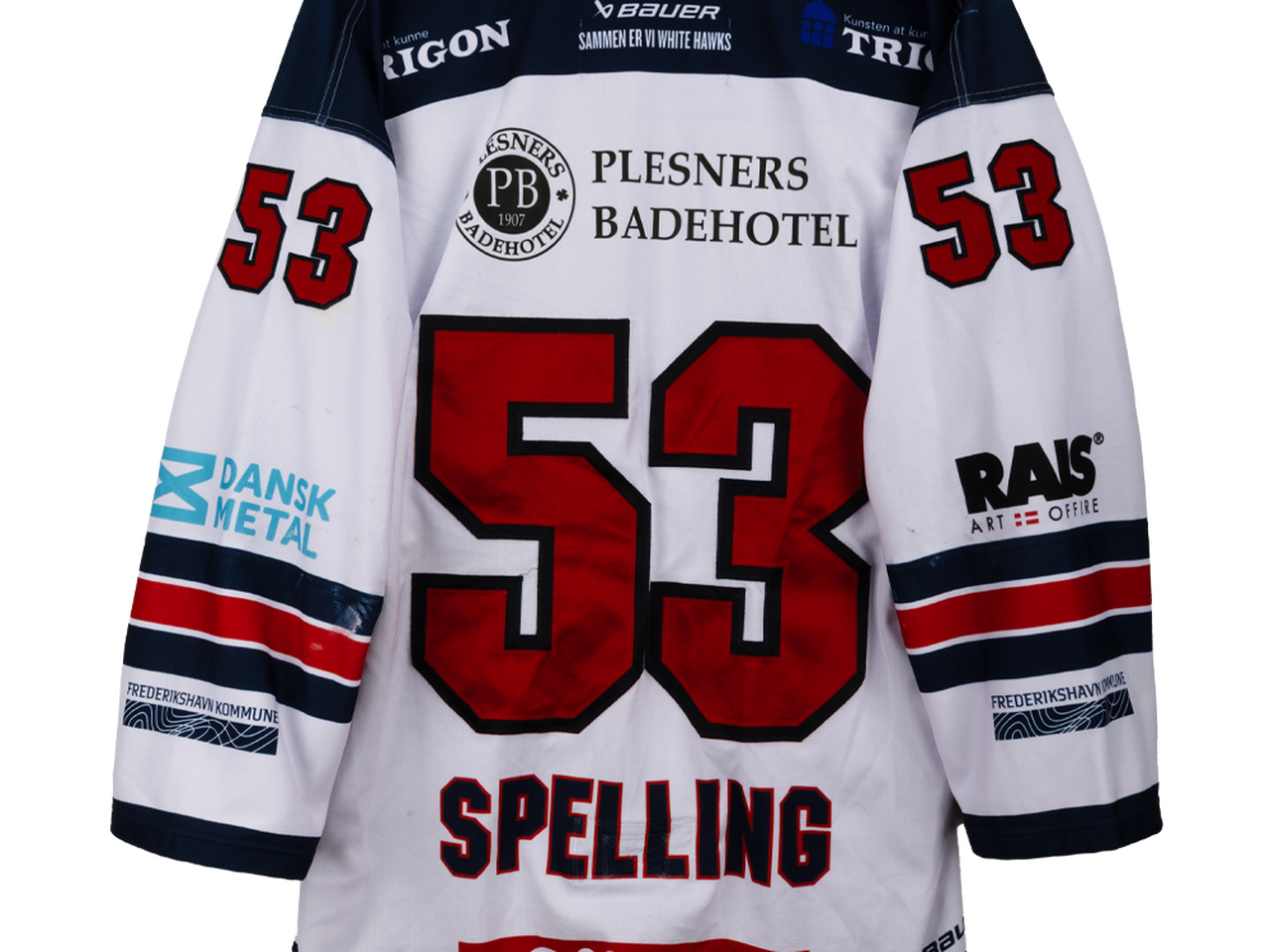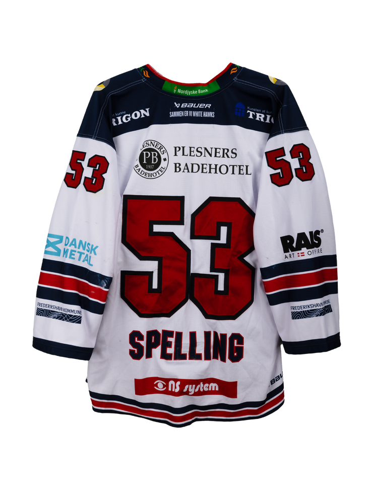 Her får du en unik mulighed for at sikre dig en ægte match worn trøje fra Spelling #53 fra Frederikshavn White Hawks.