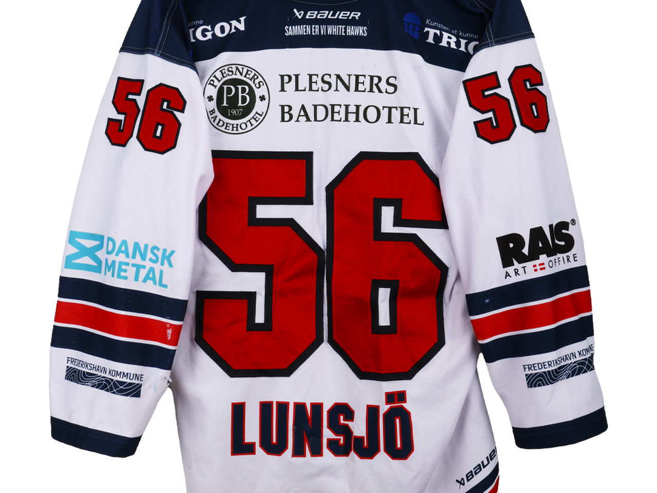 Autentisk match worn hjemmebanetrøje – Lunsjö #56, Frederikshavn White Hawks
