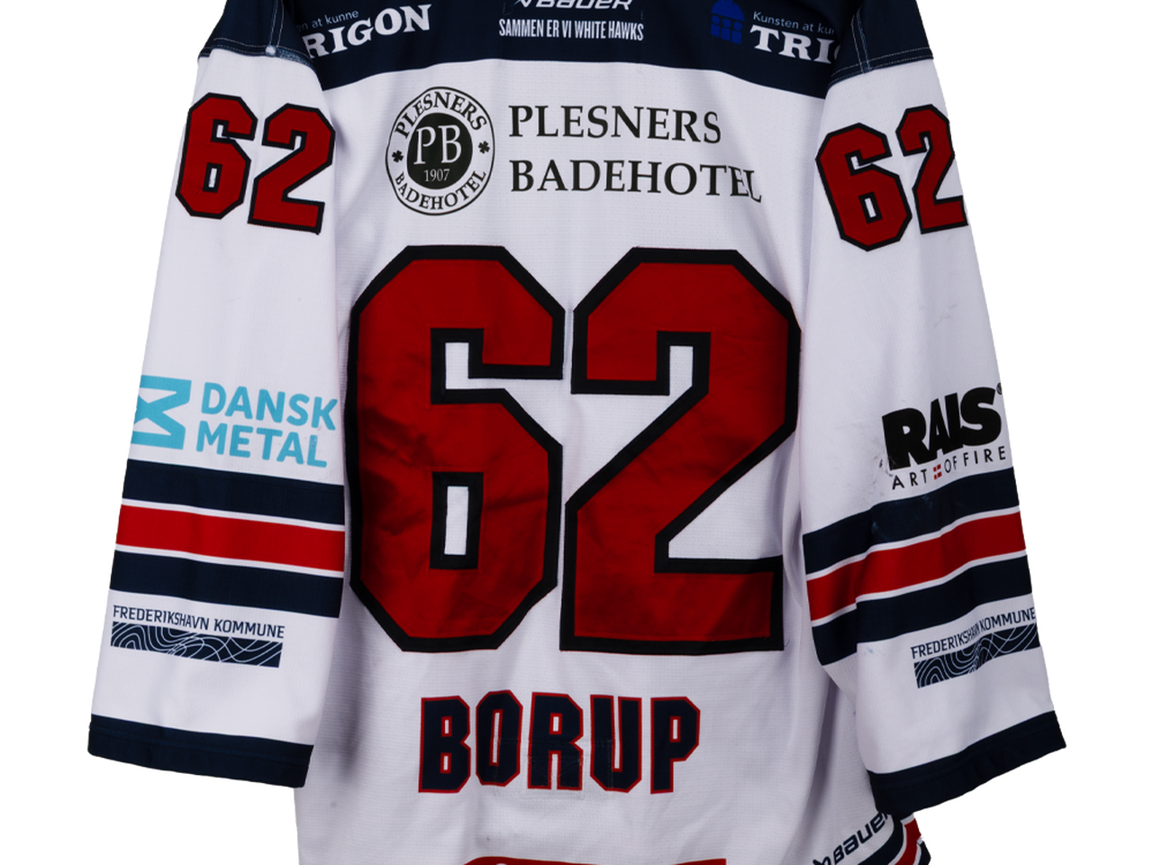 Autentisk match worn hjemmebanetrøje – Borup #62, Frederikshavn White Hawks