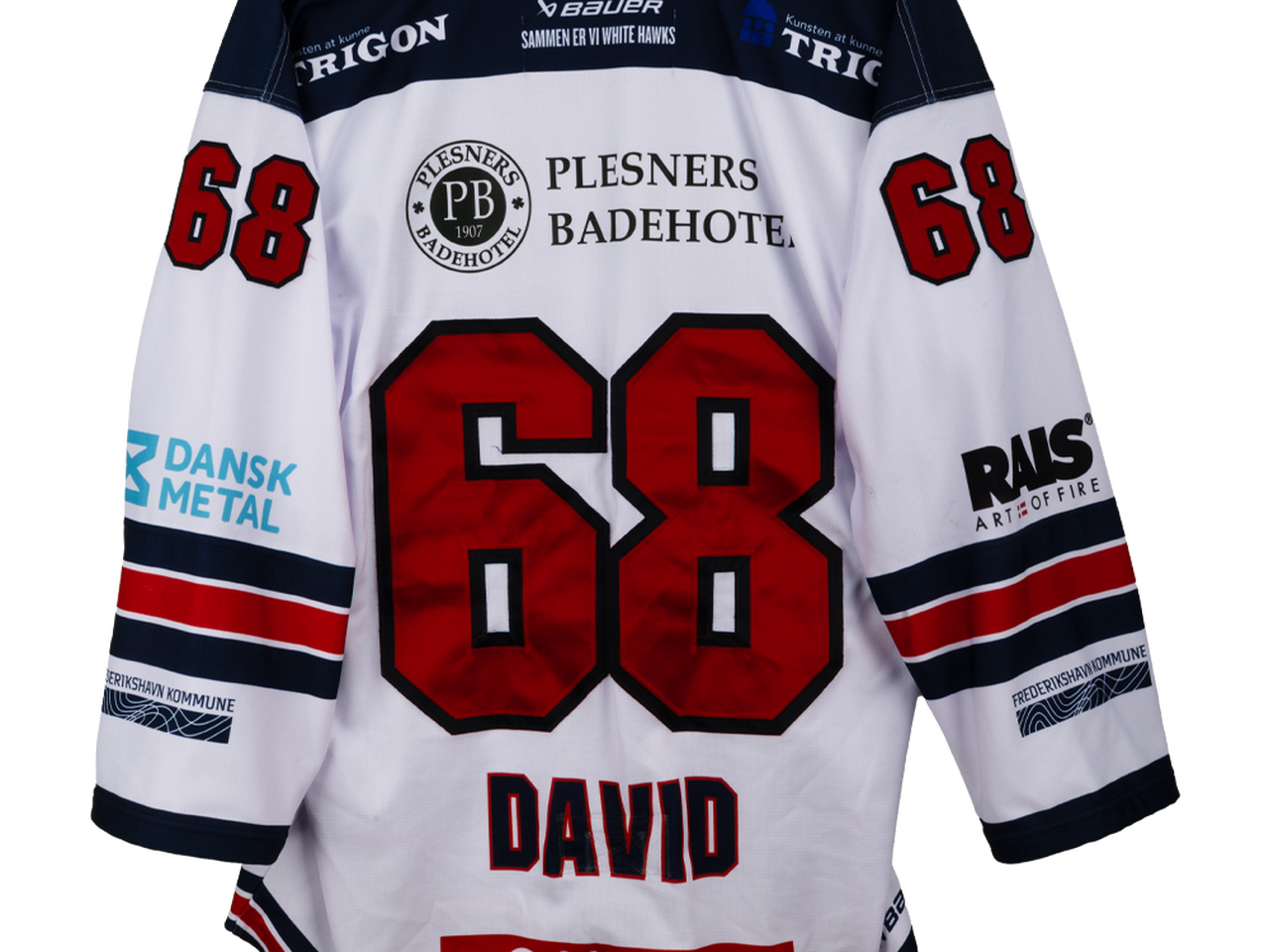 Her får du en unik mulighed for at sikre dig en ægte match worn trøje fra David #68 fra Frederikshavn White Hawks.