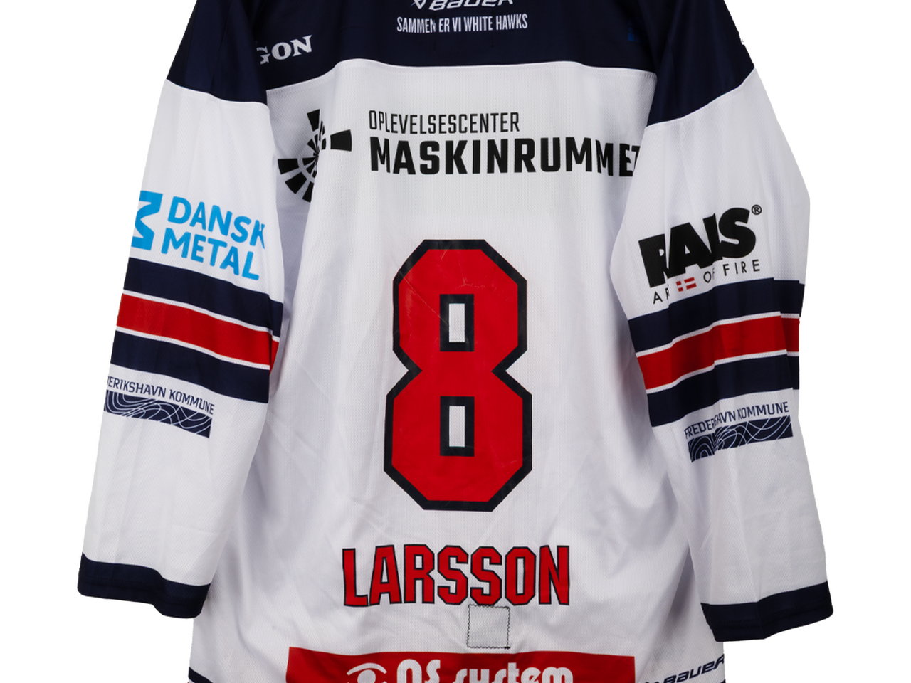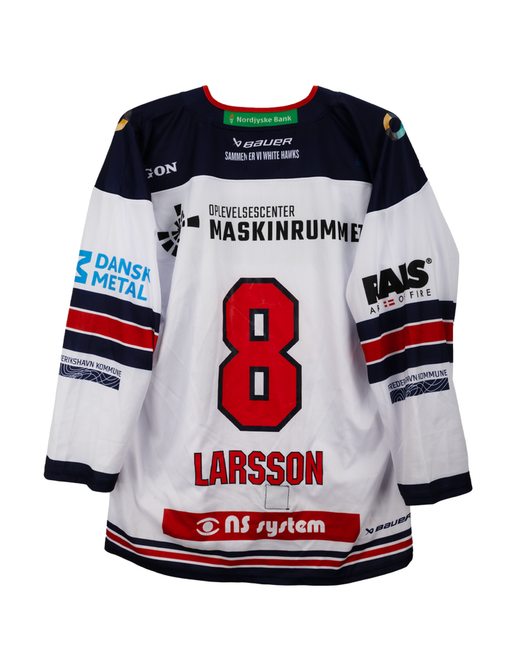 Autentisk match worn hjemmebanetrøje – Larsson #8, Frederikshavn White Hawks