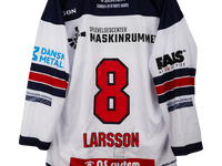 Her får du en unik mulighed for at sikre dig en ægte match worn trøje fra Larsson #8 fra Frederikshavn White Hawks.