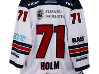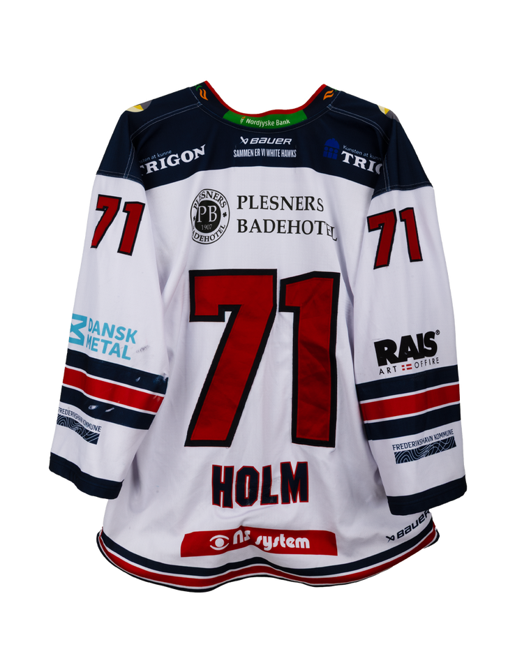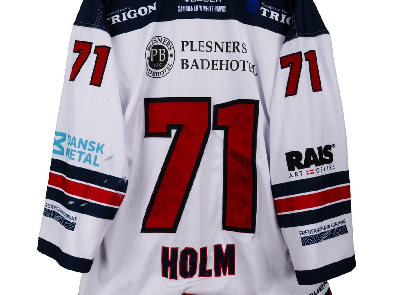 Her får du en unik mulighed for at sikre dig en ægte match worn trøje fra Holm #71 fra Frederikshavn White Hawks.